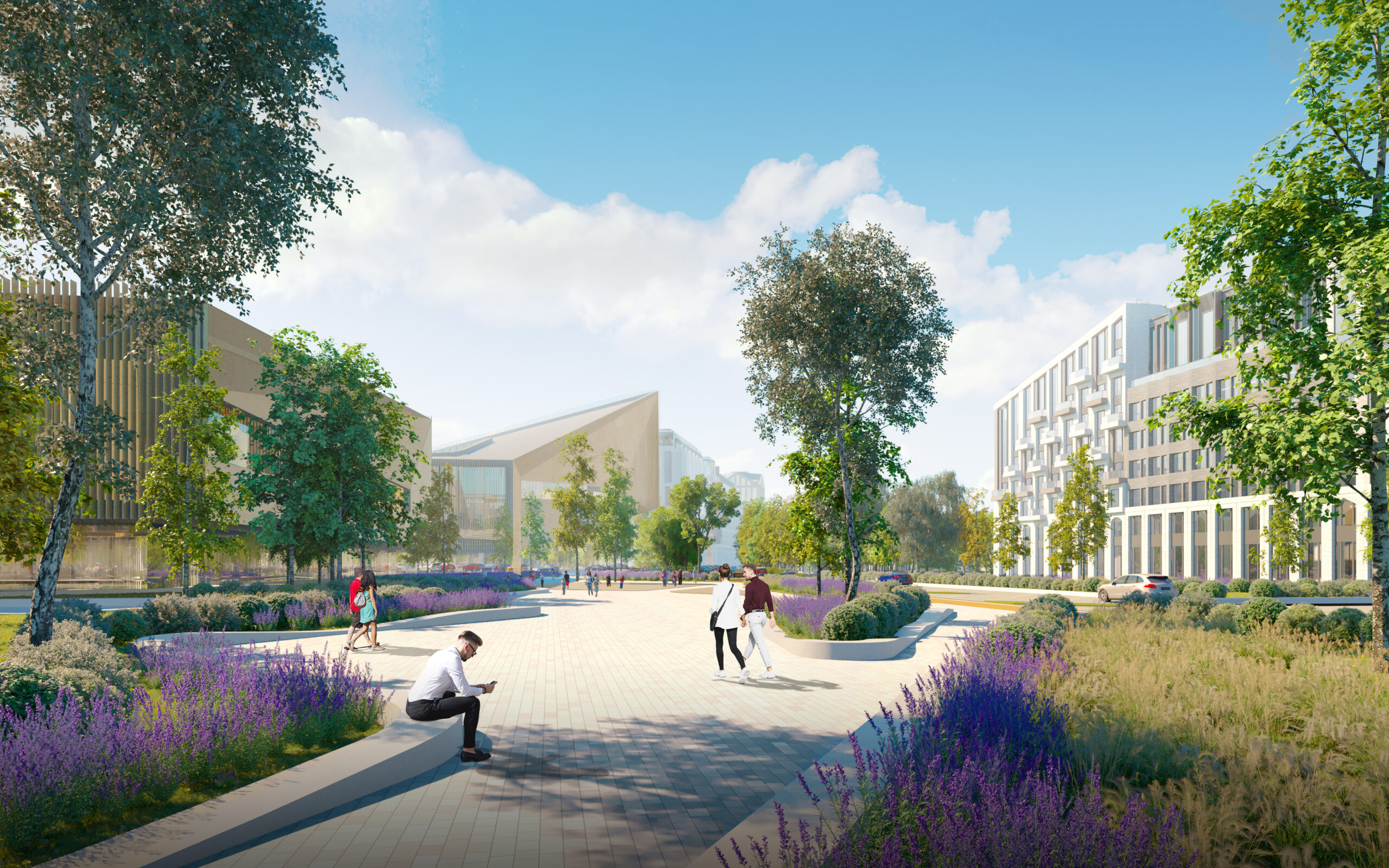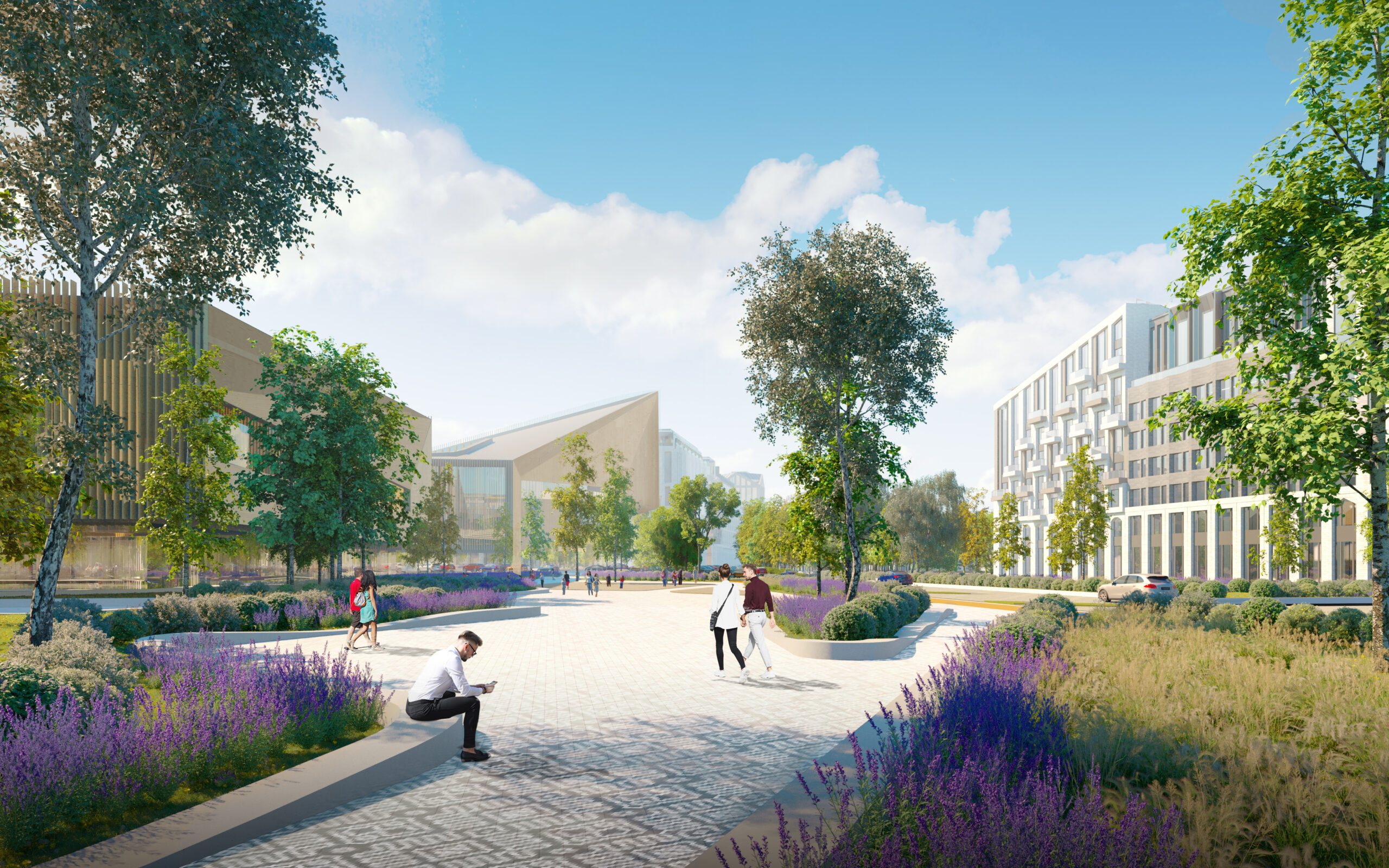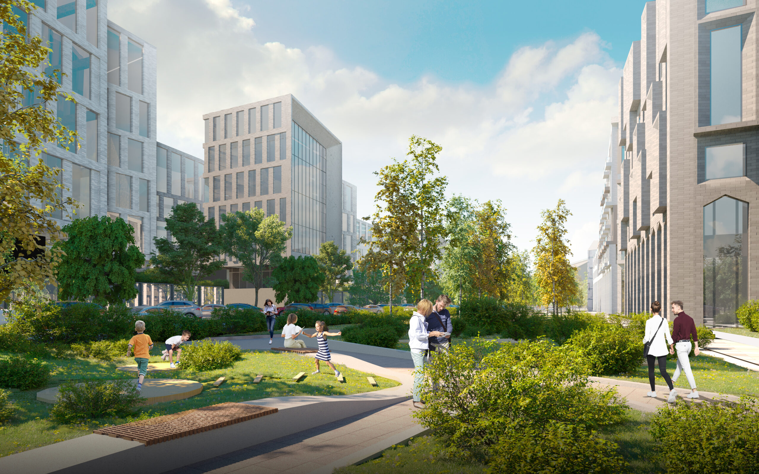 Проект воплощает идею «города в городе». Это не просто жилой комплекс, а район, концентрирующий свойственное городу наполнение