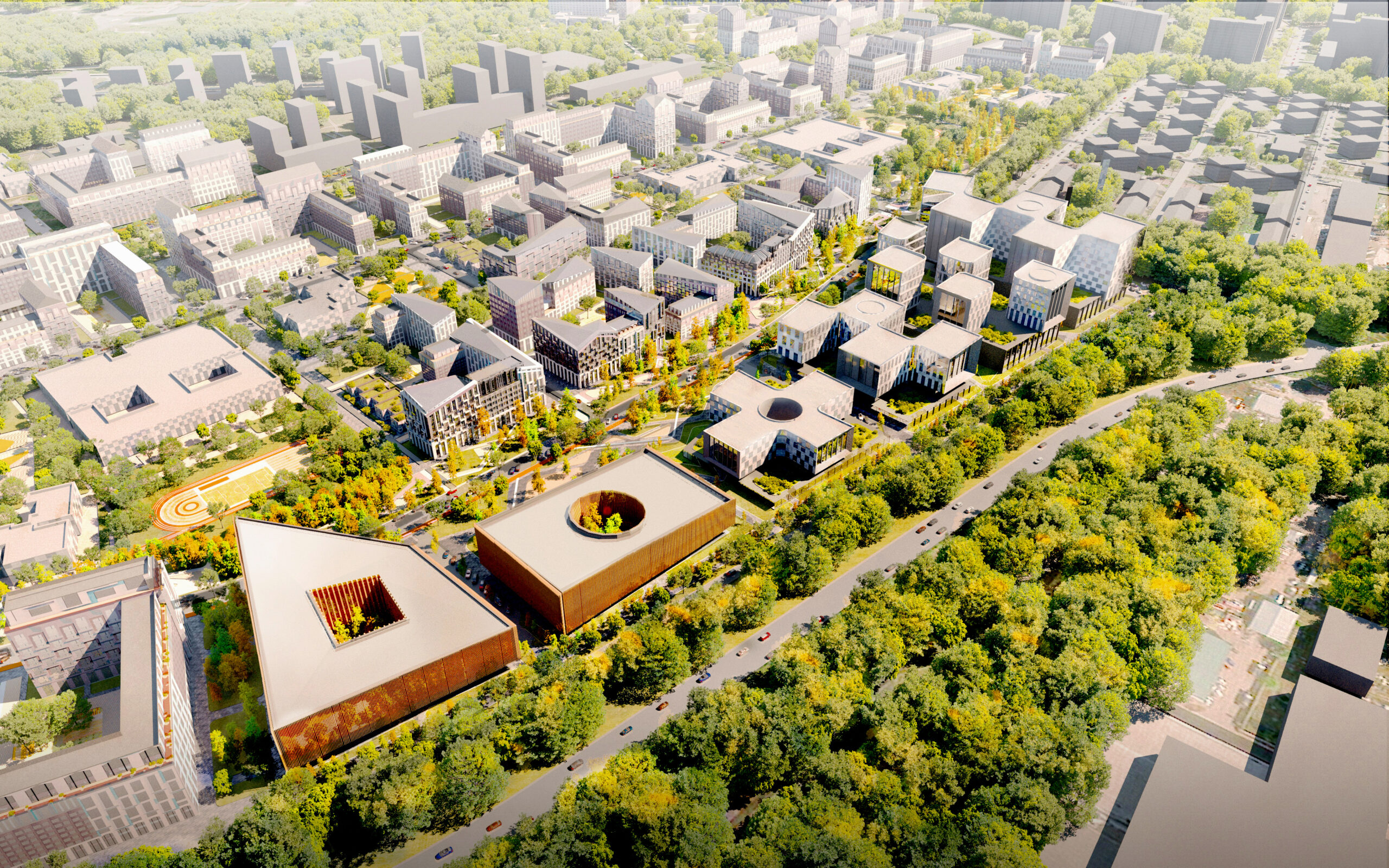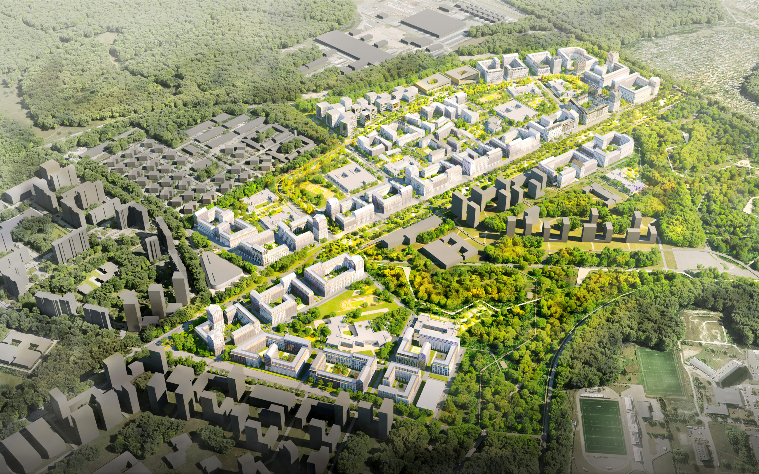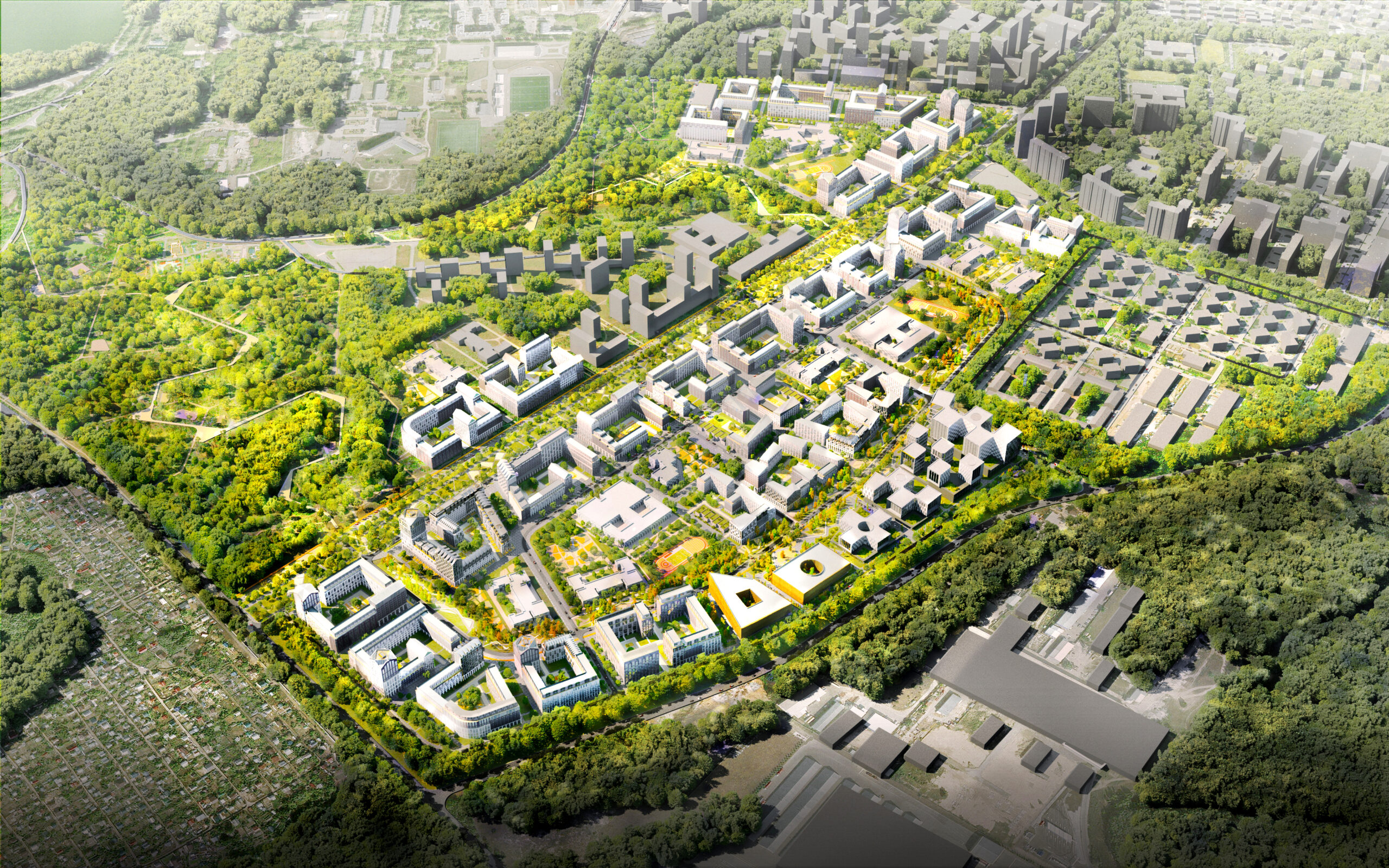 Проект воплощает идею «города в городе». Это не просто жилой комплекс, а район, концентрирующий свойственное городу наполнение